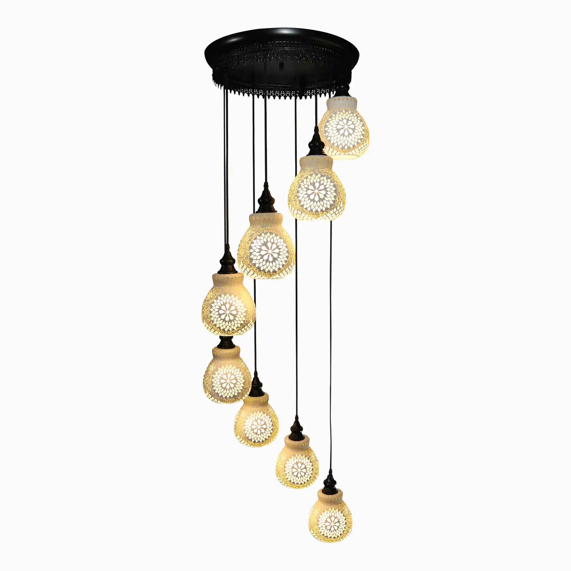 معلقة إضاءة ثمانية E27 مصنوعة يدويا من موزايك – شكل زلعة